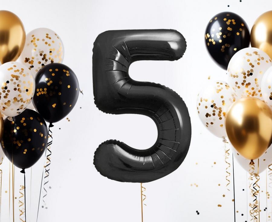 Фолиев балон цифра 5 в цвят черен - има размер 34''/85см., в надуто състояние.