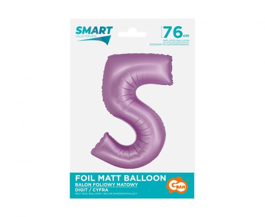 Фолиев балон цифра 5 в цвят лилав - има размер 30''/76см., в надуто състояние.