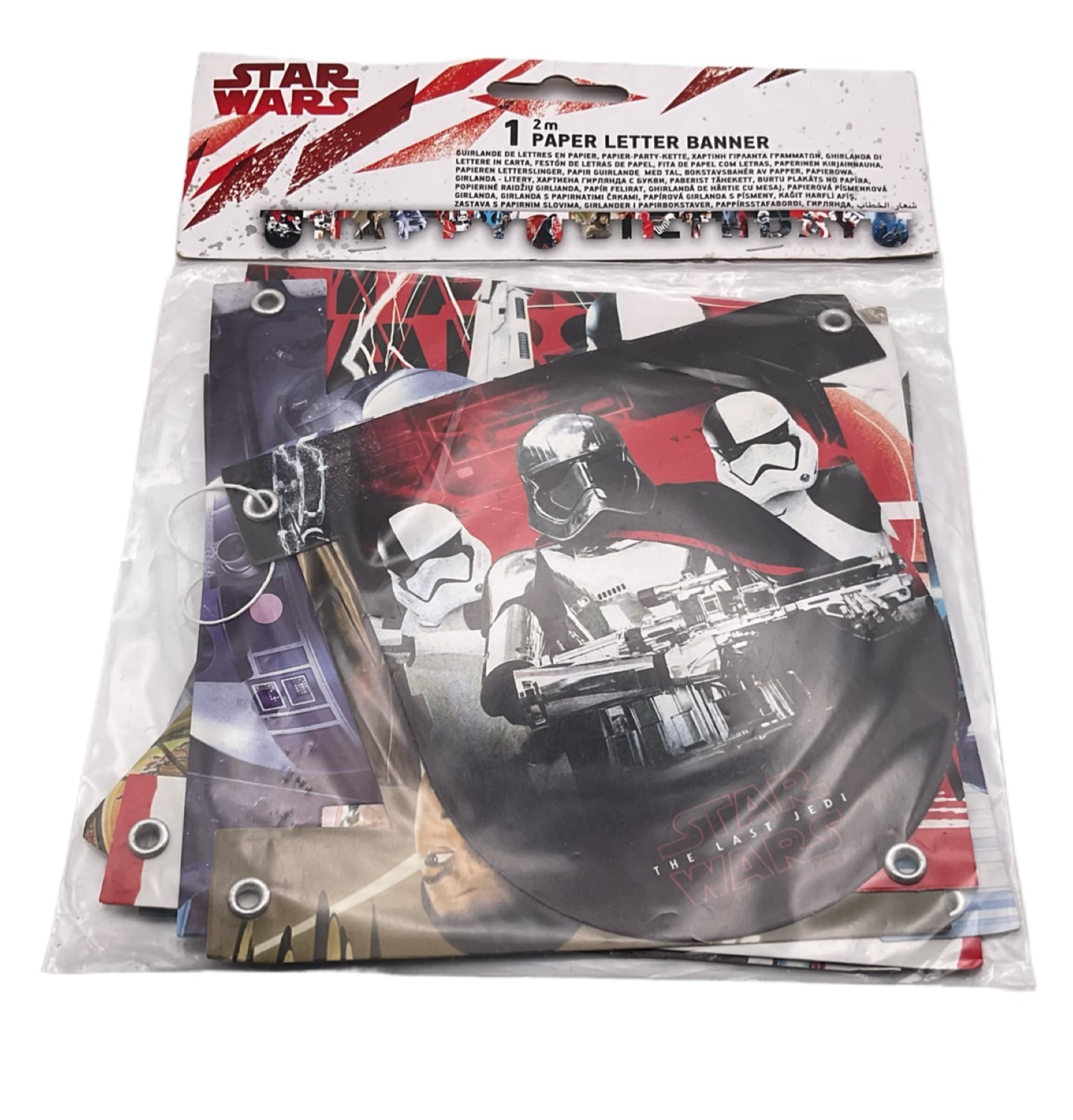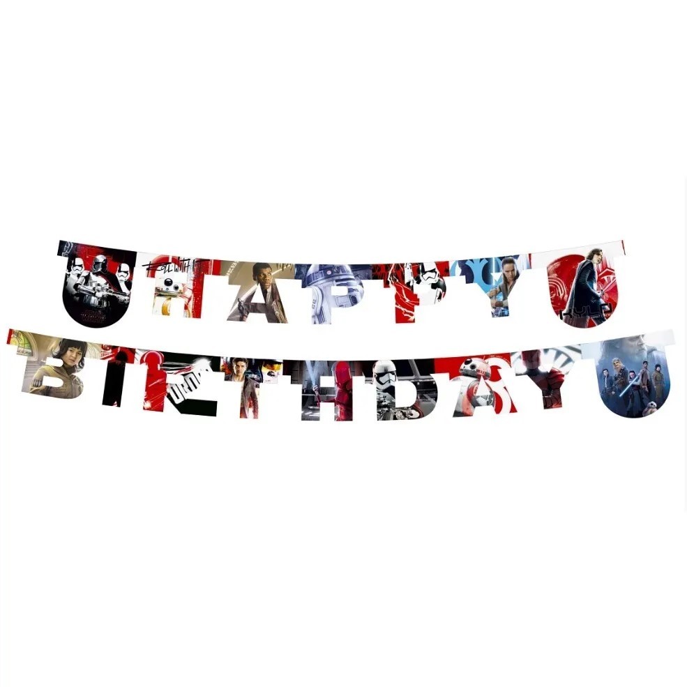 Парти артикули честит рожден ден / happy birthday банер - на емблематичната филмова космическа сага "Междузвездни войни". Парти аксесоари с любими на поколения деца и възрастни герои - Люк Скайуокър, Дарт Вейдър, Йода, дроиди, имперските войници - щурмоваци.